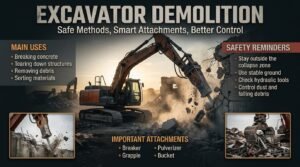 The attachment often decides what kind of demolition work the excavator can do. Choosing the wrong attachment can slow the job, damage the machine, or create safety problems.