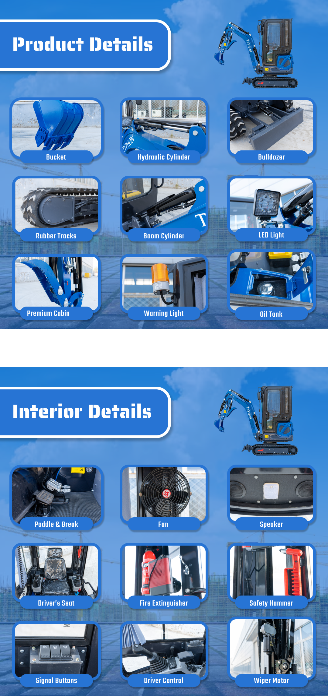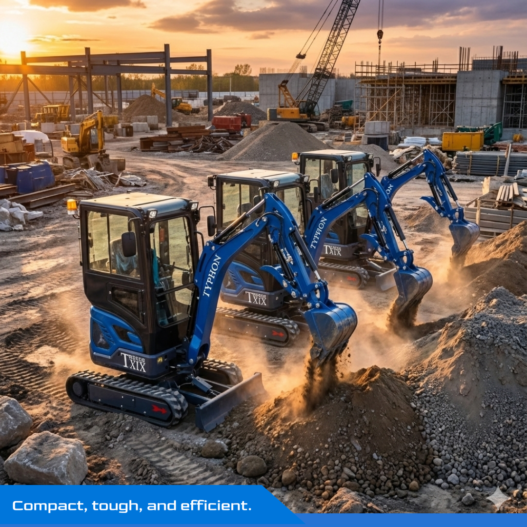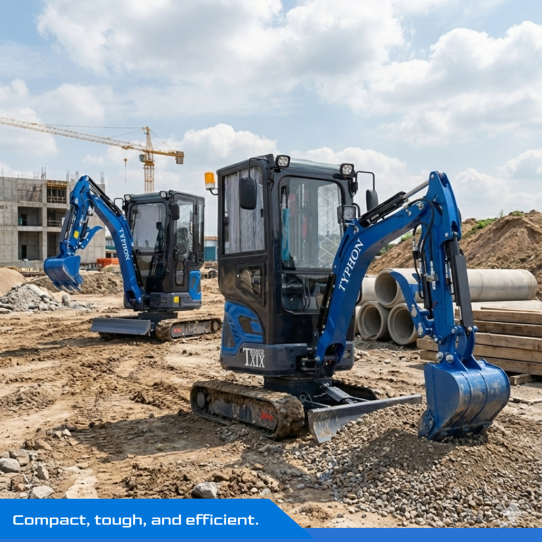 Buyers choose TYPHON TERROR XIX Prestige Cabin mini excavator when they want a machine that fits tight sites but still supports real jobsite productivity. If you want help matching buckets, thumbs, or hydraulic tools to your workflow, reach out—we’ll recommend a practical setup that fits your projects.